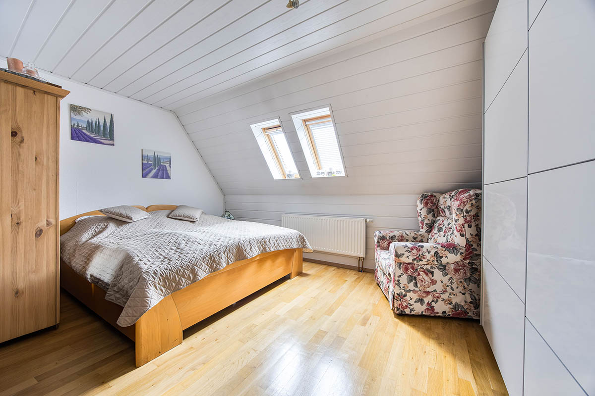 des Hauses. Hier befinden sich das Elternschlafzimmer, eine Ankleide und ein Gästezimmer