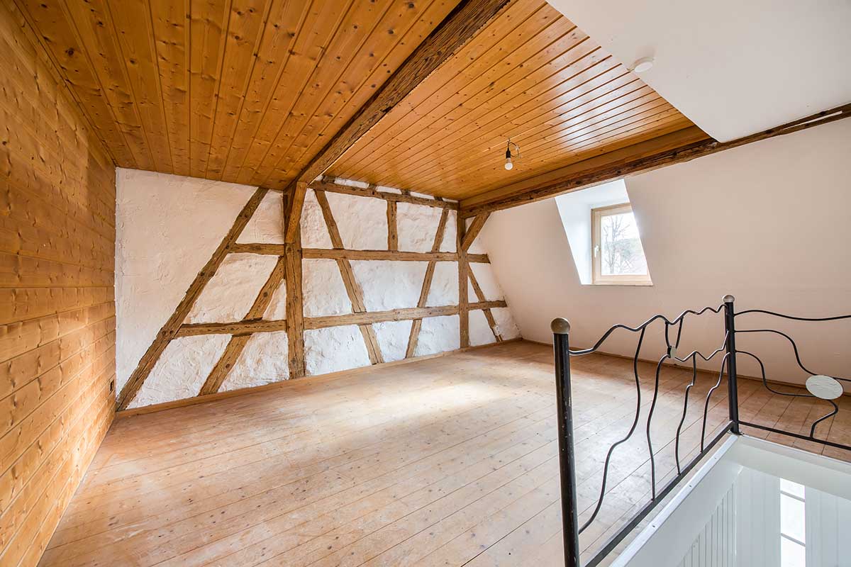 landwirtschaftlich genutzten Flächen in Wohnräume umgewandelt wurden, das Dachgeschoss