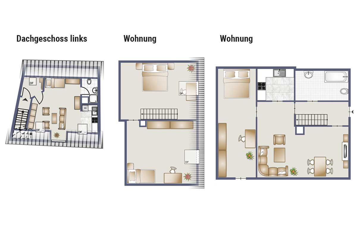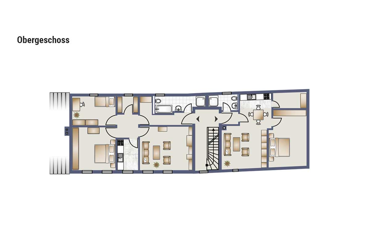 im 1. Obergeschoss und zwei im 2. Obergeschoss. Ergänzt wird das Angebot durch eine