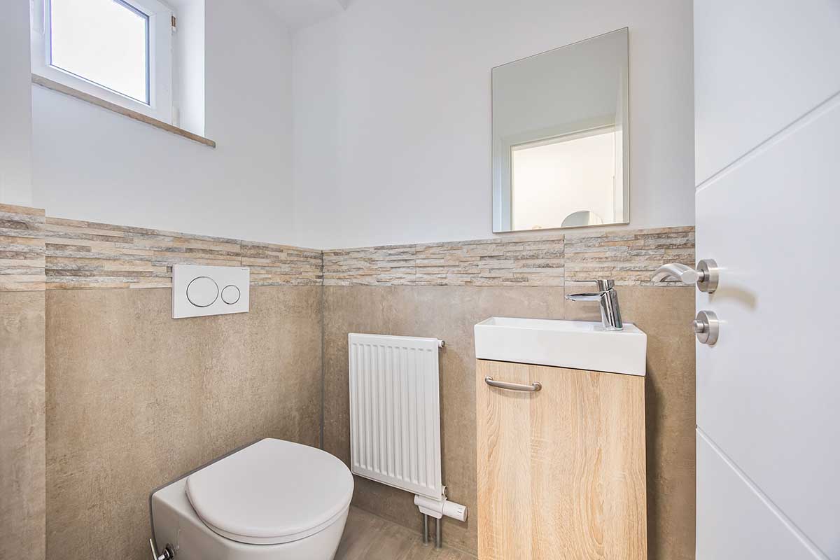 verlegten Fliesen in ansprechender Farbgebung und sorgt im gesamten Erdgeschoss für