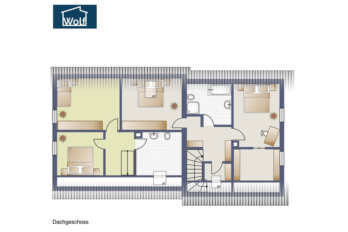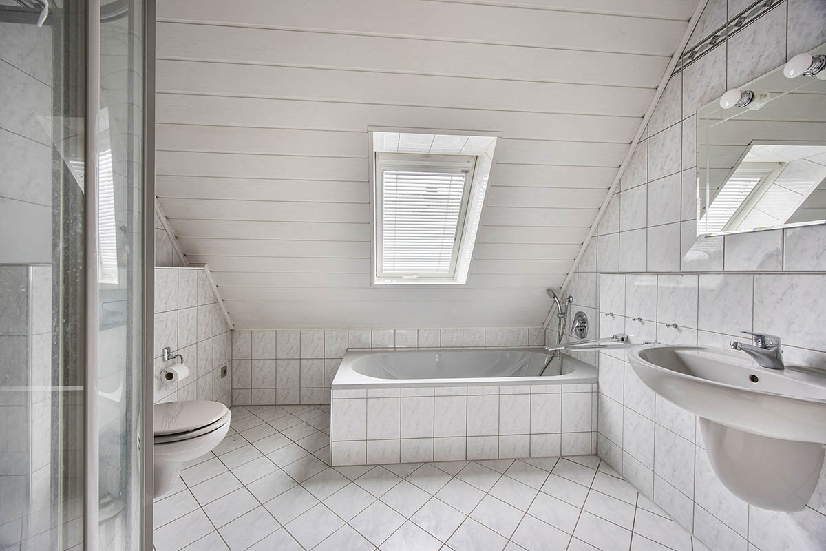 sowie ein großzügiges Tageslichtbad mit Wanne und Dusche. Das Haus ist vollständig