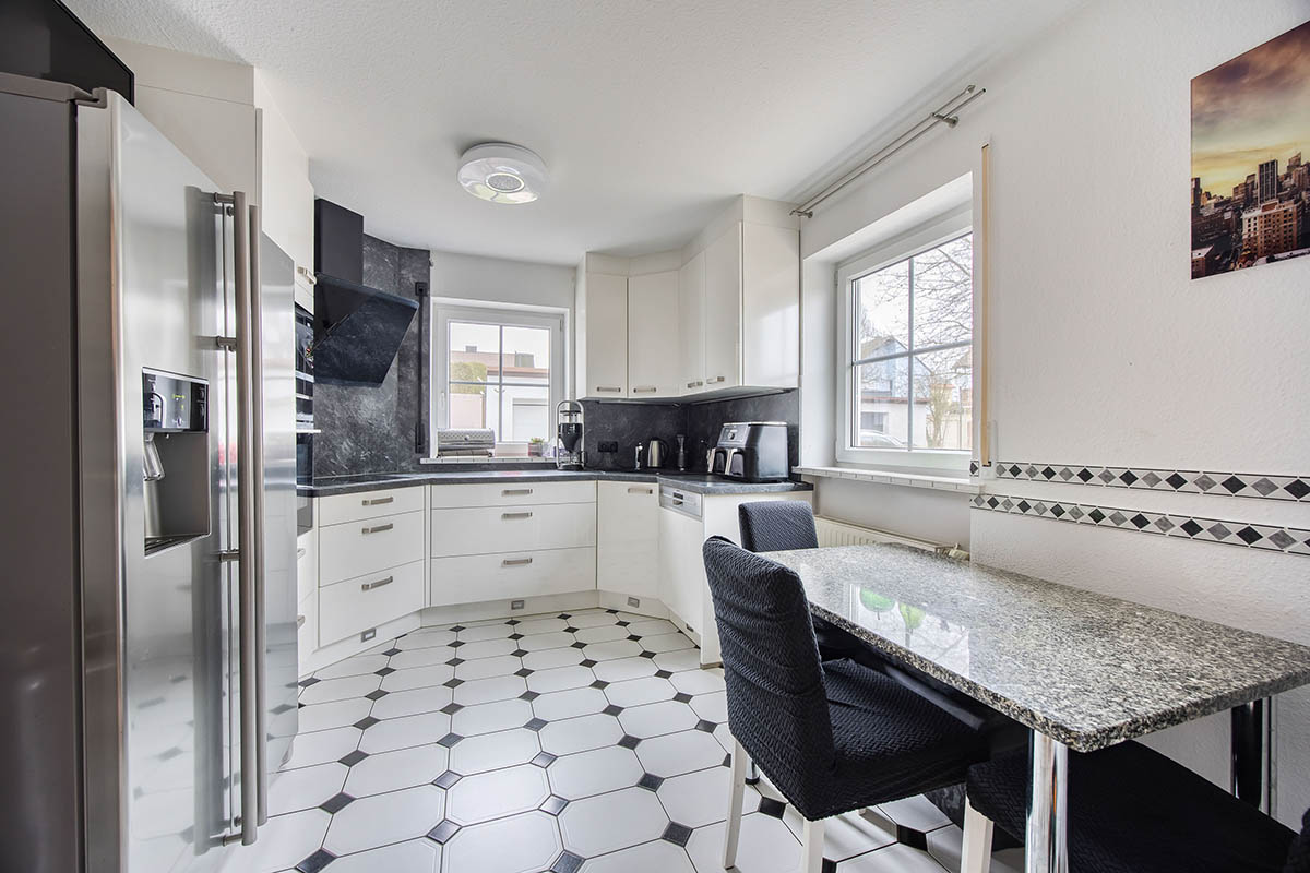 /Westterrasse besticht. Eine moderne, separate Küche rundet das Erdgeschoss ab.