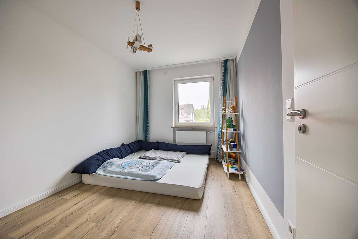 dem hellen Schlafzimmer und einer separaten Ankleide, steht ein sonniges Kinderzimmer zur