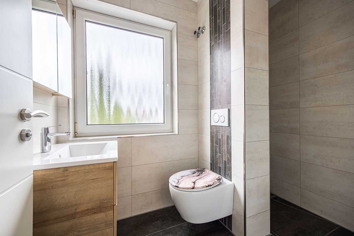 verlegten Fliesen in ansprechender Farbgebung und sorgt im gesamten Erdgeschoss für